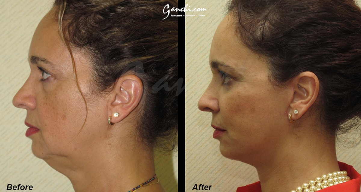 Patient was not happy with the excess skin on her neck and desired a more youthful look. A face neck lift (rhytidectomy) was done which defined her jawline and neck by removing excess skin and fat as well as tightening the underlying muscles.