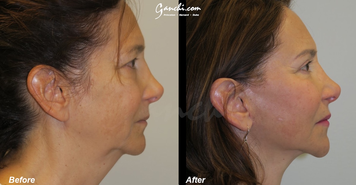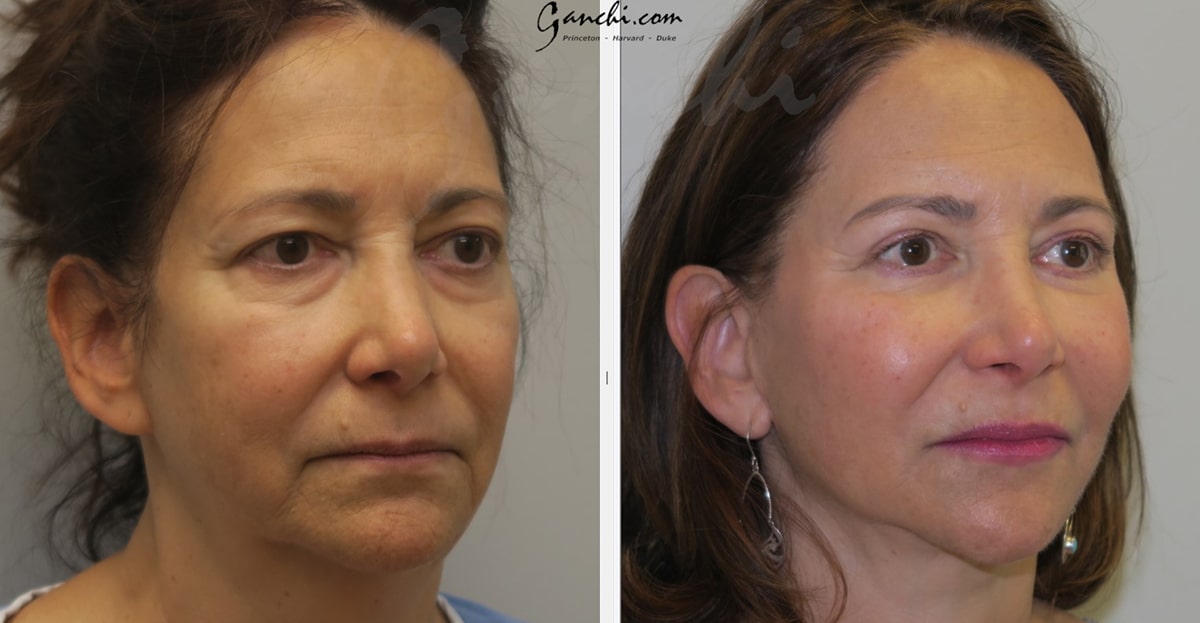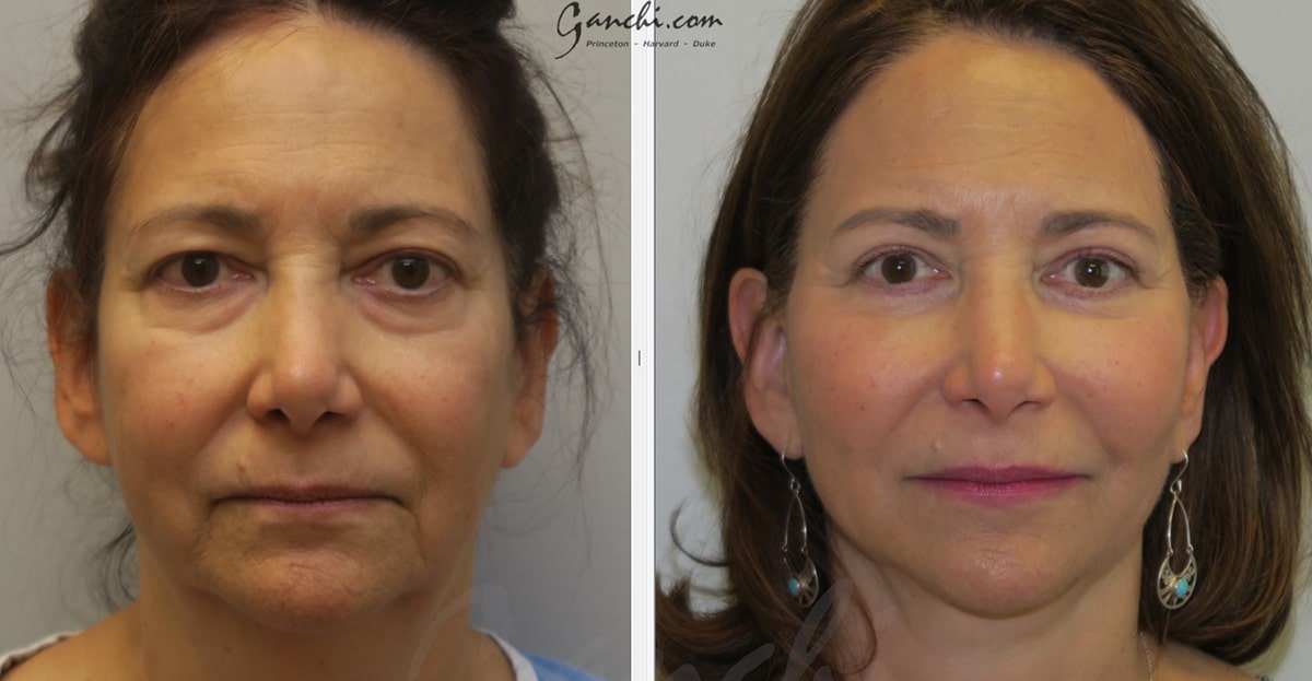 This patient was “tired” of looking “tired!!! Dr. Ganchi performed a faceneck lift which lifted the lower portion of her face and defined her neck. She also had a lower and upper blepharoplasty (eyes) along with fat transfer to fill in the hollows of her lower lids. Lastly, a browlift was performed. All of these procedures resulted in a more youthful, refreshed face. She looks amazing!!!